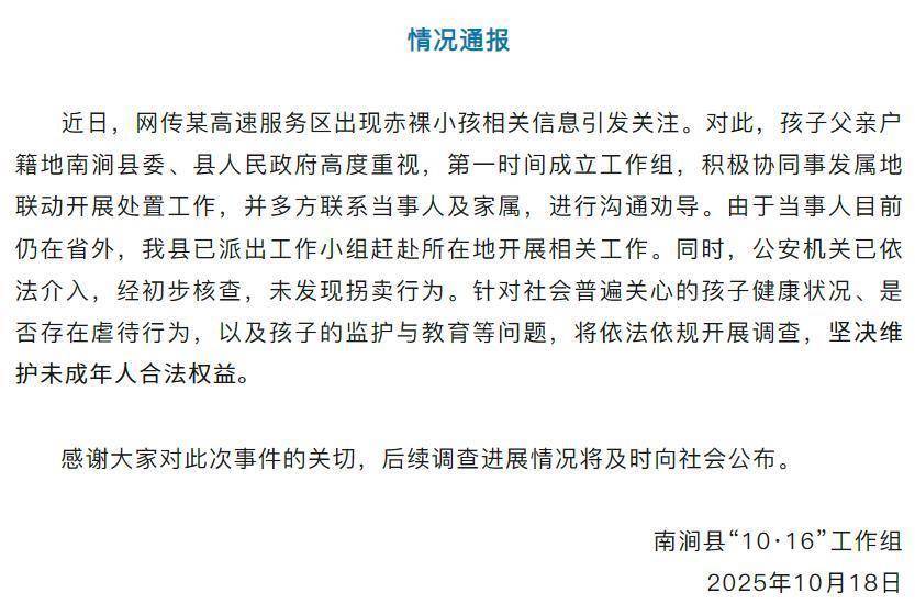 10月18日,南涧县“10·16”责任组发布情况通报称,公安机关已照章介入,经初步核查,未发现拐卖行动。针对社会大齐温文的孩子健康气象、是否存在恣虐行动,以及孩子的监护与教师等问题,将照章依规开展拜访。